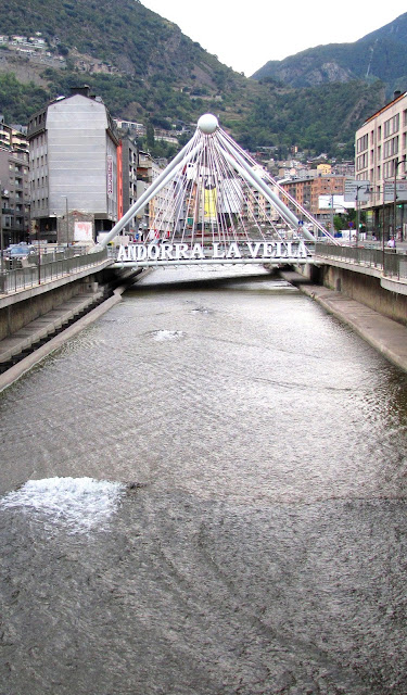 Aspecto do Rio Valira, em Andorra a Velha. Com as margens regularizadas a betão, o fundo coberto a cimento e bastante corrente durante todo o ano, naturalmente não tem algas ou qualquer outra vegetação. Uns selvagens os habitantes de Andorra, na óptica do ilustre biólogo, uma vez que deviam ter poupado alguma flora fluvial.