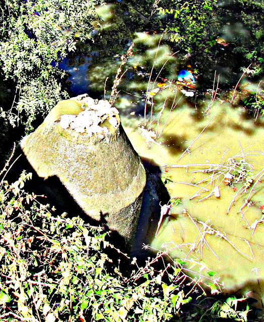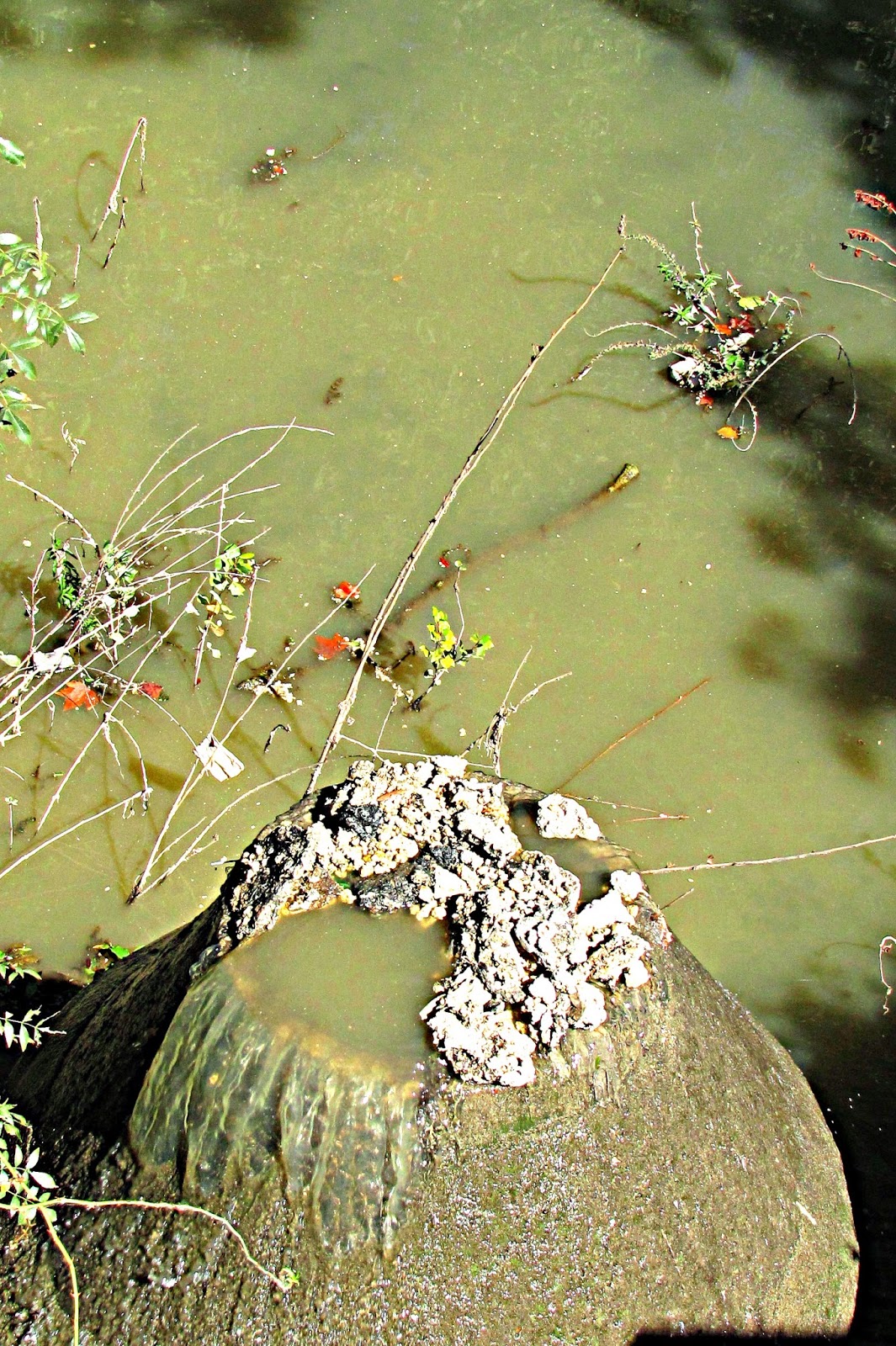 O objectivo principal era obter fotos. Para demonstrar que a anunciada limpeza do Nabão, infestado de algas, se limitou de facto à zona envolvente do Mouchão, e que mesmo aí o trabalho foi mal feito. Fica para o próximo escrito. Apesar disso, com a ajuda do cheiro nauseabundo em plena cidade antiga não foi difícil encontrar a respectiva origem.